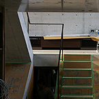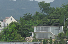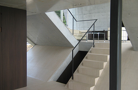 一筆書きのコンクリートスラブが斜面にそって腰を下ろしています。