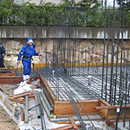 建物手前のグレーの部分が引き続き工事予定の駐車スペースとなる。